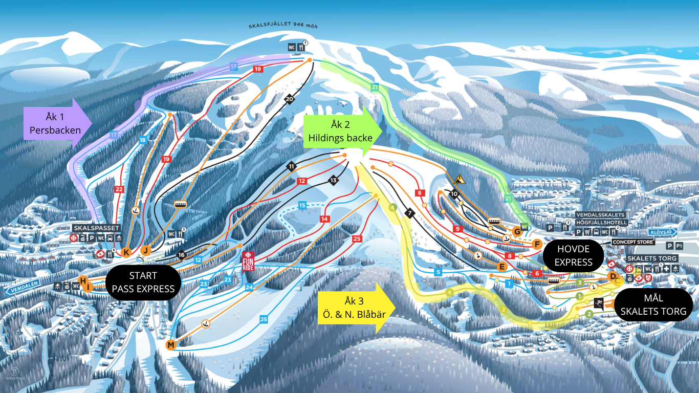 Starten av tävlingen går vid Skalspasset genom att du tar Pass Express (lift J pistkartan) upp till toppen. Tiden startas efter man klivit av liften och passerat första porten med flaggor, stoppas gör den i slutet av skidbacken där du passerat ett blått streck, detta gäller för alla 3 åken. Alla deltagare måste följa anvisad bansträckning och åka igenom alla kontrollportar för att få sin tid registrerat.